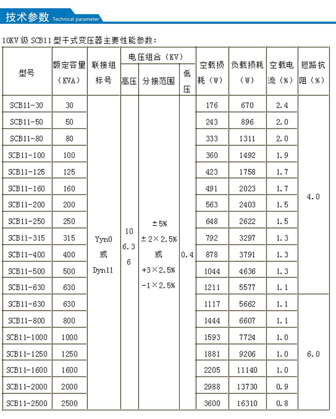 【額定容量】:30-2500kva      【額定電壓】:10kv