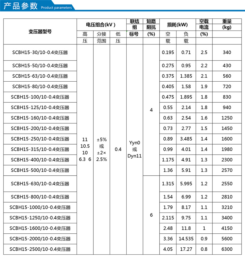 【額定容量】:30-2500kva 【額定電壓】:10kv 【聯結組別編號】:Dyn11,Yyno