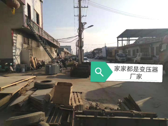 村莊的兩邊家家門口都堆放著銹跡斑斑的廢舊鐵芯和變壓器殼體,很多戶人家院里錯亂的堆放著一些油浸式變壓器,遠處的路上還停著幾輛貨車正在裝變壓器。那些很便宜的變壓器就出自這里,出自這家家戶戶作坊式小廠。我不禁感嘆,生意還挺好的,又不禁嘆氣,又將會有多少人將會因為便宜蒙受更大損失付出更大代價。