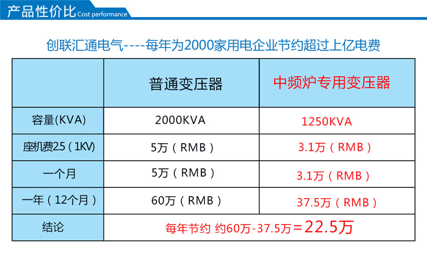 在中頻爐專用變壓器的生產和用料上,通過準確計算技術參數,選用優質高導