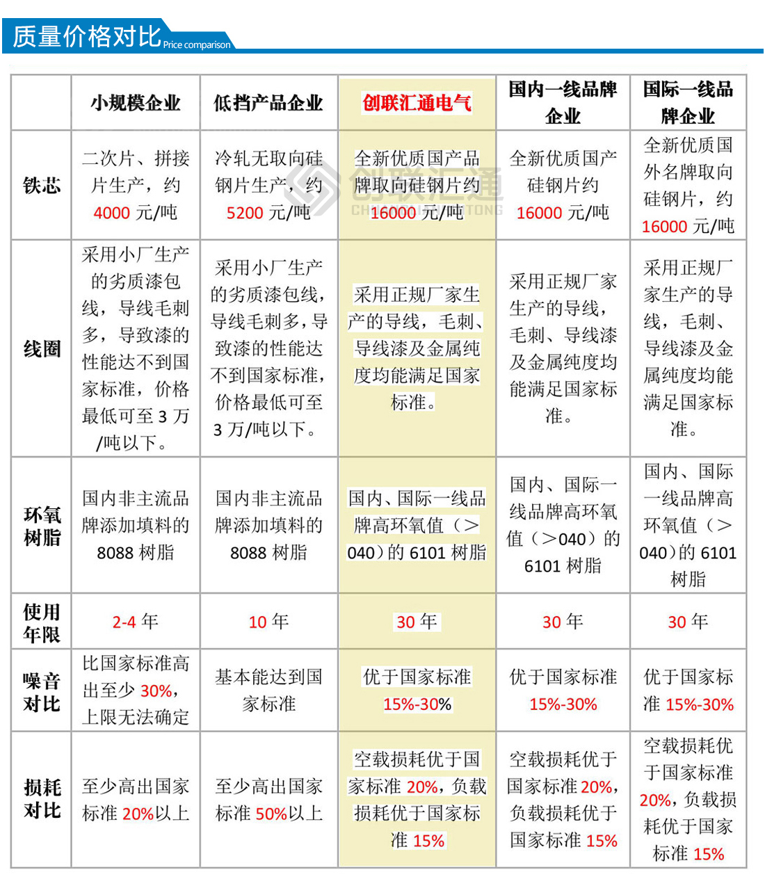 以800kVA為例,△P0為1.05kW;兩種型式配電變壓器的負載損耗值是一樣的,則△Pk=0, ,便可計算出一臺產品每年可減少的電能損耗為: