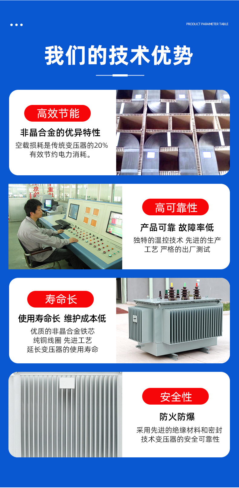 總結起來,SH21非晶合金油浸式變壓器是一種創新的變壓器技術,具有許多優勢。其獨特的非晶合金材料使其在效率、導熱性能、噪音水平、抗短路能力和環保性方面都表現出色。隨著電力行業的發展,SH21非晶合金油浸式變壓器將成為未來電力傳輸和分配系統的重要組成部分。