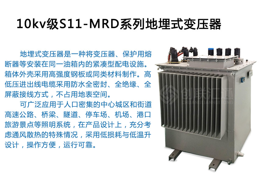 S11-MRD地埋式變壓器由于其占地面積小,安裝方便和免維護(hù)等特點,大多用在城市公用配電、停車場、高架、機(jī)場、港口、隧道、旅游景點等用地緊張的場所,城網(wǎng)配電改造以及對占地面積和高度要求嚴(yán)格的場所。