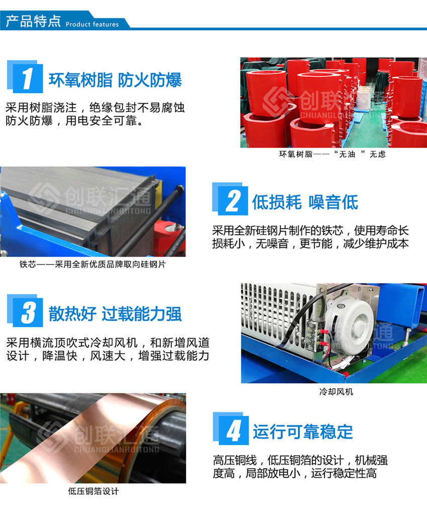 雙分裂環氧樹脂澆注干式變壓器的設計符合實際應用并具有以下技術特性: